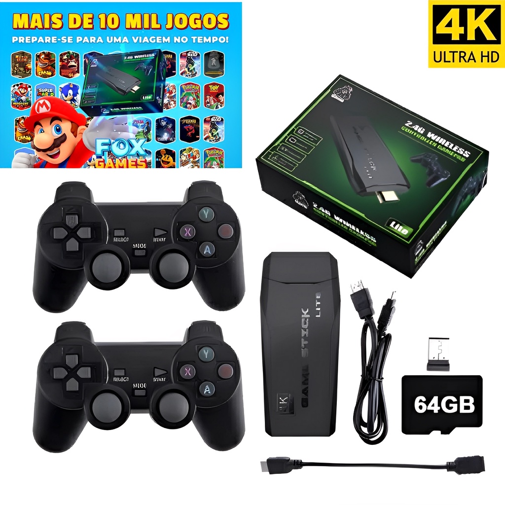 Video Game Stick 4k Lite 10mil Jogos Retro 2 Controles Sem Fio Shopee Brasil