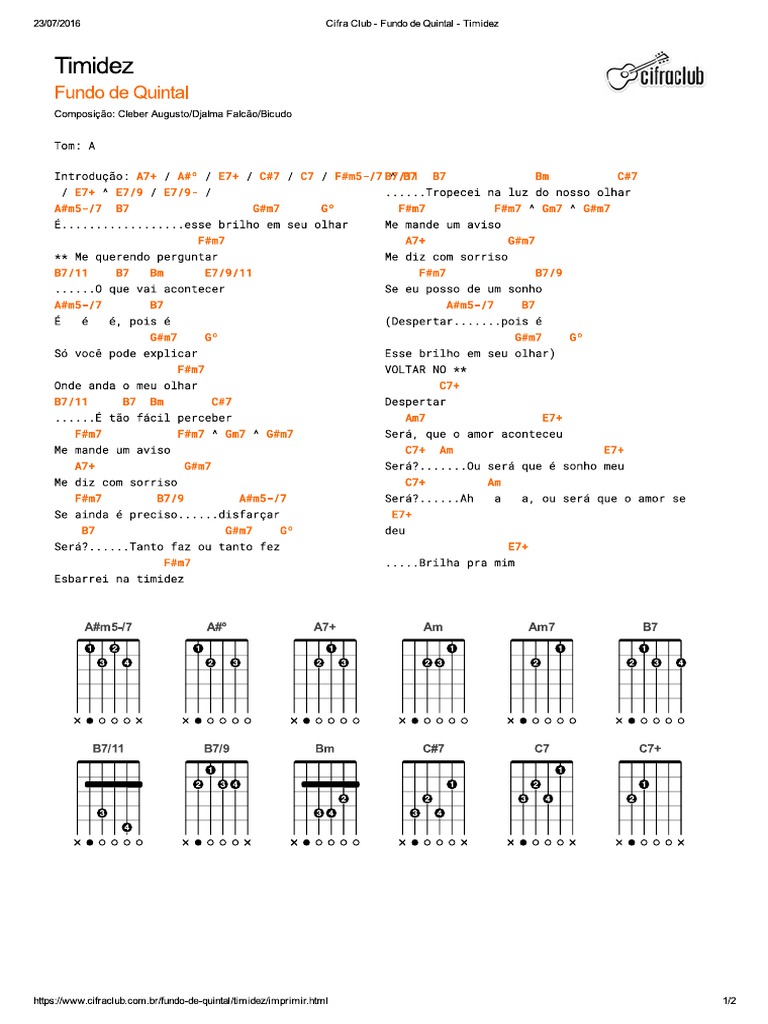 Cifra Club Fundo de Quintal Timidez PDF PDF