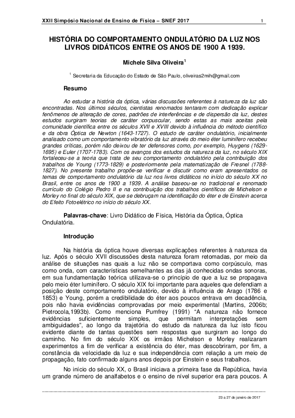 (PDF) HISTÓRIA DO COMPORTAMENTO ONDULATÓRIO DA LUZ NOS LIVROS DIDÁTICOS ENTRE OS ANOS DE 1900 A