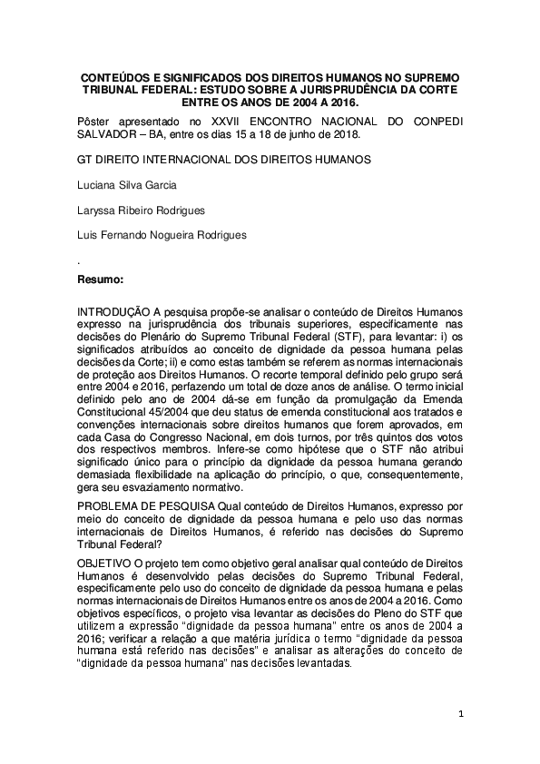 (PDF) CONTEÚDOS E SIGNIFICADOS DOS DIREITOS HUMANOS NO SUPREMO TRIBUNAL FEDERAL ESTUDO SOBRE A