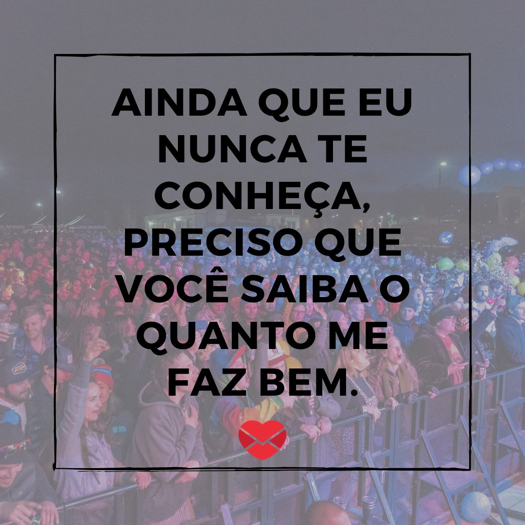 34 Frases Fã Para Ídolo. 01 - você está em tudo que penso, sinto e vejo. 02 - Eu te amo, você é a força, o motivo, a razão pela qual eu encontrei pra nunca, jamais desistir. 03 - Não é aquele amor artificial, muito menos aquele passageiro, é aquele que levamos para vida toda, pois nem se quizéssemos,poderíamos evitar.