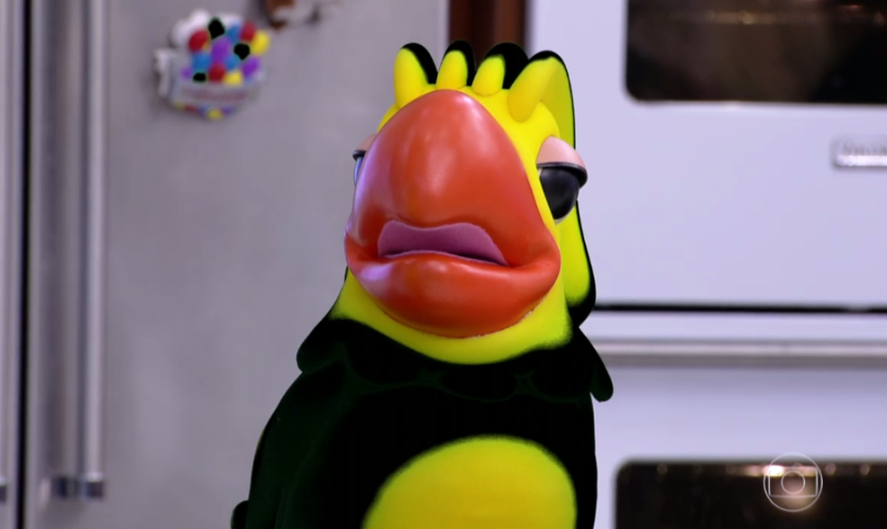 Sou filho do Louro José e a minha mãe me disse que a Ana Maria Braga é a minha avó", explicou o papagaio. O nome do novo mascote não foi revelado e a participação foi rápida. Ele deve.