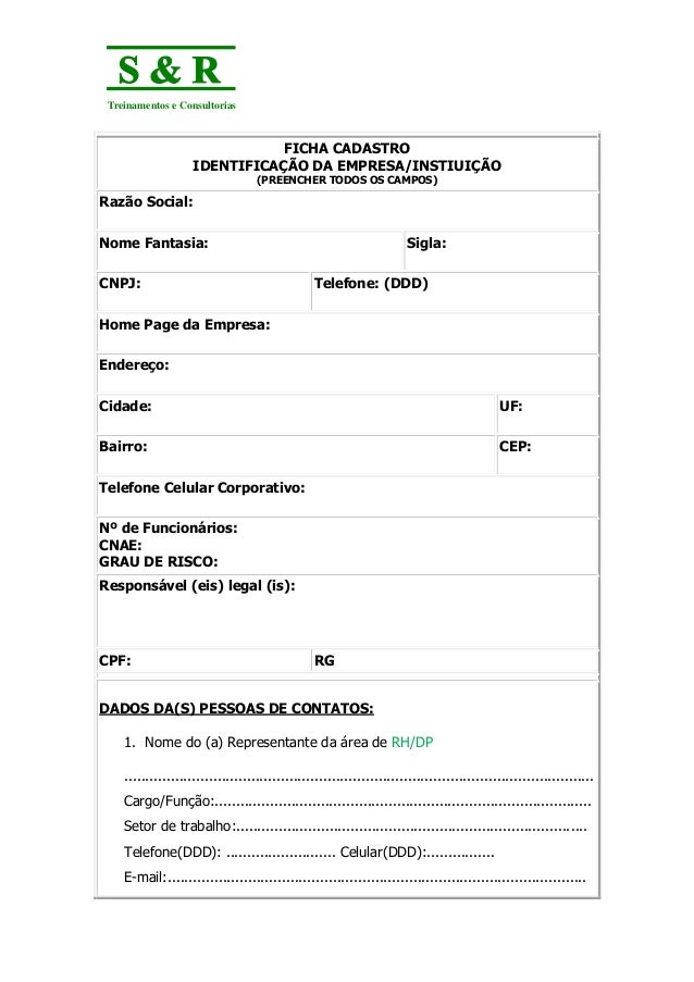 Exemplo De Ficha De Cadastro Pessoal Novo Exemplo