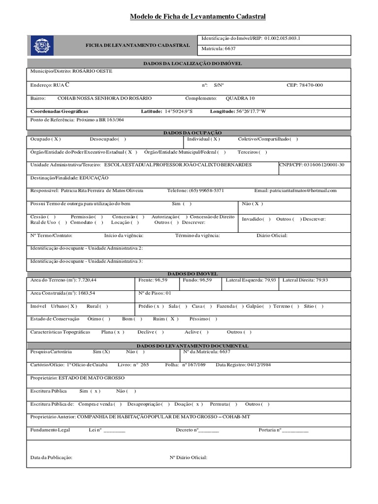 Modelo Ficha de Levantamento Cadastral Preenchida PDF