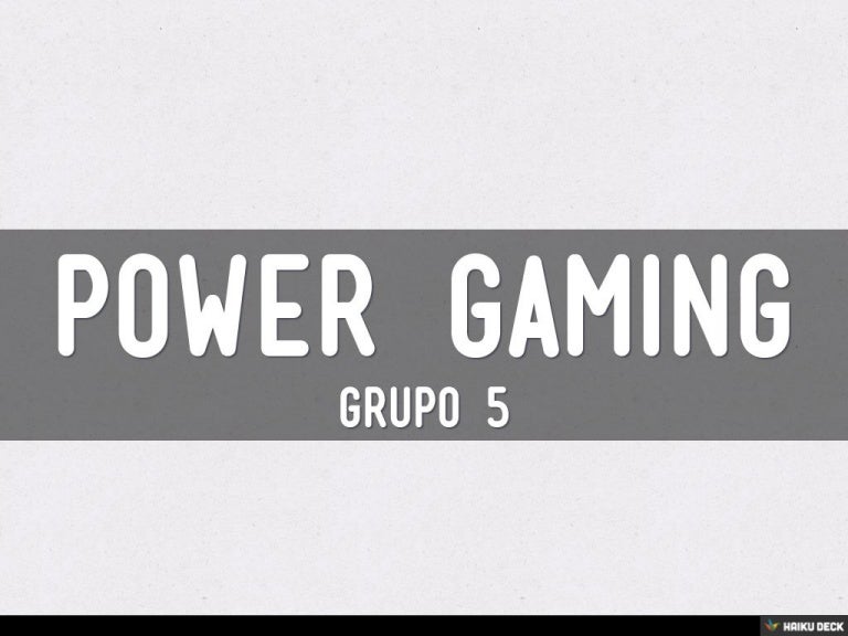 O Power Gaming é um estilo de RP em que a pessoa faz algo no jogo que é impossível de se realizar na vida real. Esse estilo de jogo geralmente é bastante divertido e inovador, para abrilhantar os modelos de roleplay além do comum. Em jogos como o GTA esse modelo é bem sustentável, pois há várias coisas irreais no jogo.