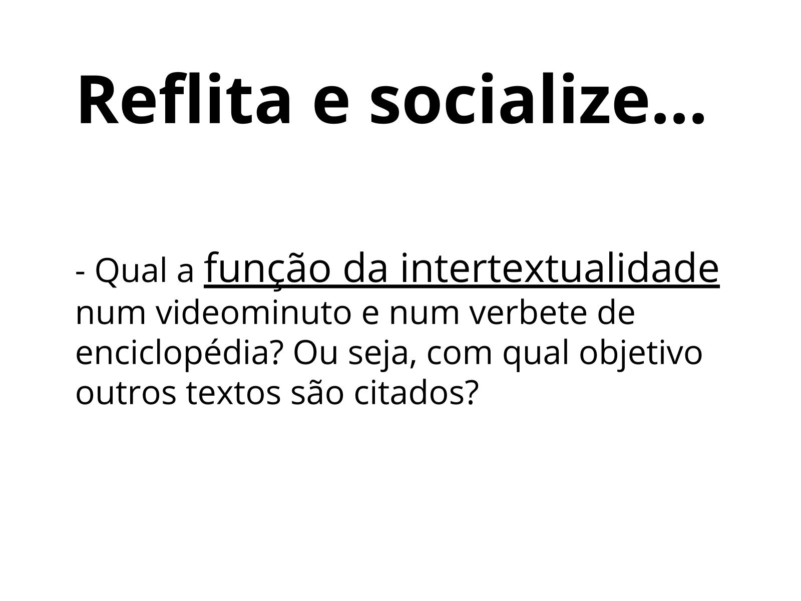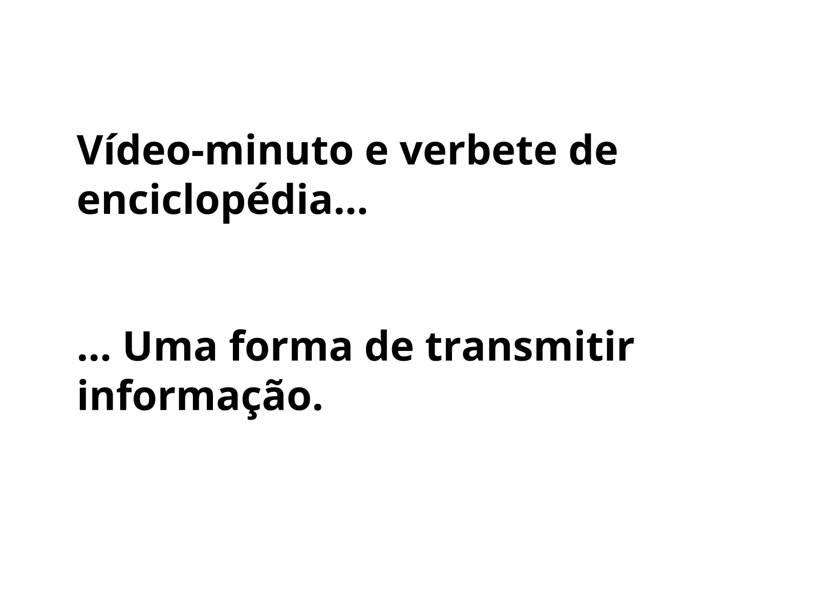A leitura em um verbete enciclopédico impresso e virtual também muda, uma vez que virtualmente ela não é linear e os hipertextos permitem que o leitor opte por diferentes caminhos e textos, aprofundando o tema. O videominuto tem como objetivo homenagear, criticar, informar ou gerar humor, tendo um tempo determinado em torno de 1 minuto.