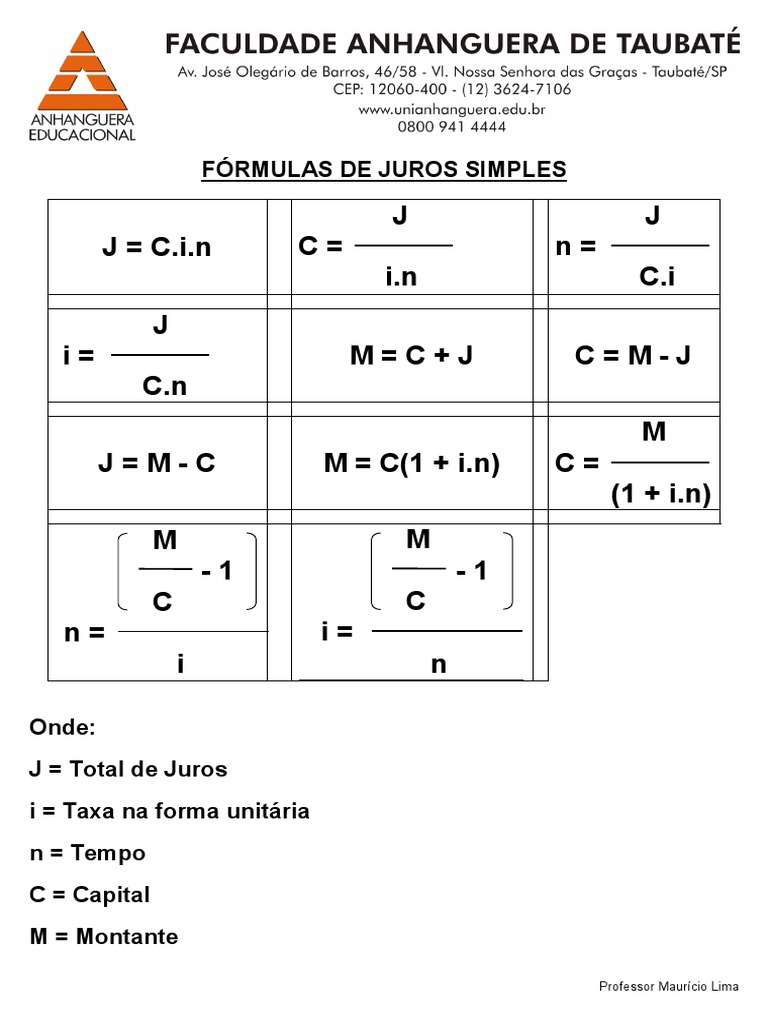 formula dos juros simples Matemática financeira, Química em sala de aula, Ensino de matemática
