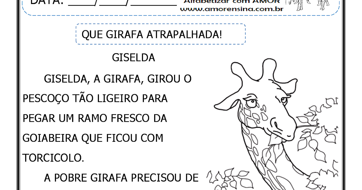 Professora Angela Martins Atividades Alfabetização Texto Girafa