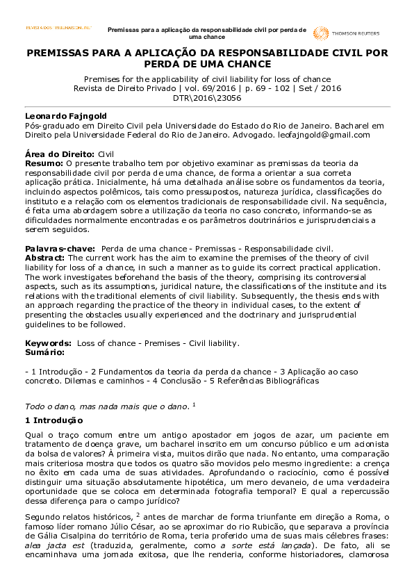 (PDF) Premissas para a aplicação da responsabilidade civil por perda de uma chance Leonardo