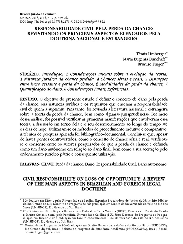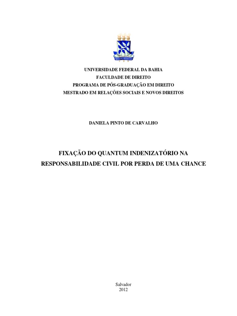 (PDF) PERDA DE UMA CHANCE ASPECTOS QUANTO À NATUREZA JURÍDICA DA INDENIZAÇÃO PROVENIENTE DA