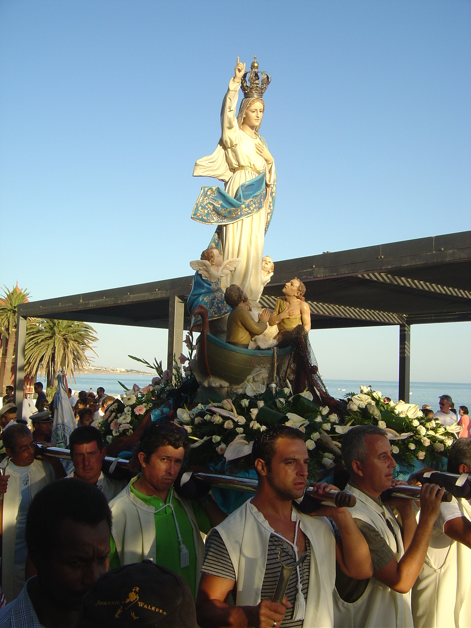 Descrição. Um dos mais importantes e simbólicos momentos religiosos da Vila de Cascais, é a Procissão de Nossa Senhora dos Navegantes, que conta sempre com a participação das famílias de pescadores trajadas a rigor e centenas de fiéis. Esta procissão seguirá por terra e por mar, com os barcos dos pescadores engalanados que.