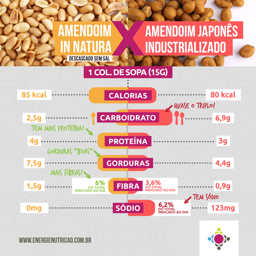 Dicas para consumir amendoim japonês sem engordar. Consumir amendoim japonês com menor quantidade de sódio possível. Comer no máximo 30 g por dia, o que equivale a um punhado. Evitar consumir no horário noturno. Tenha em mente de que amendoim japonês engorda quando aquela caloria ingerida não será utilizada rapidamente.