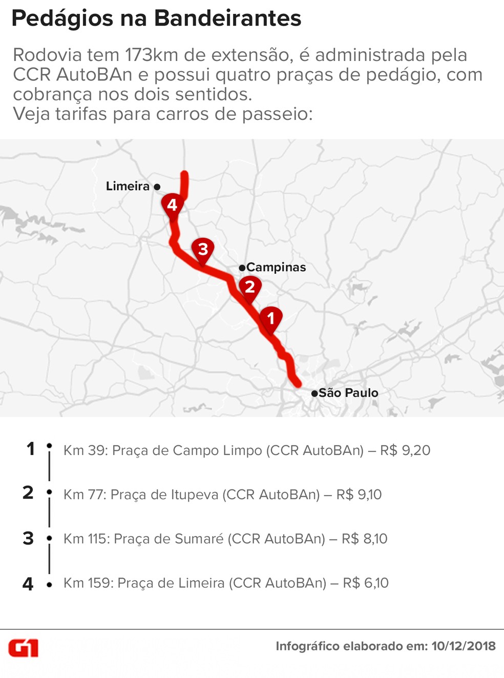 Anhanguera e Bandeirantes somam R115 em pedágios; veja mapa das 14 praças das rodovias